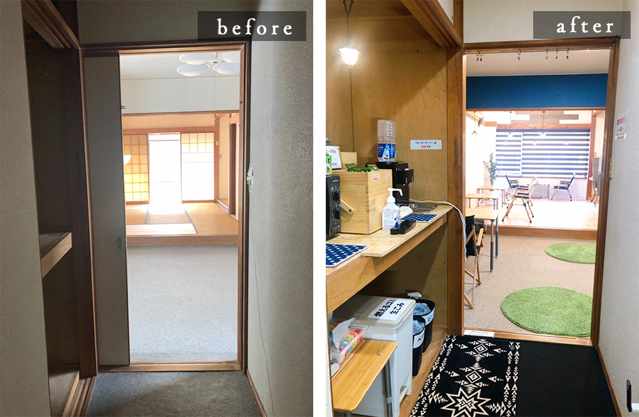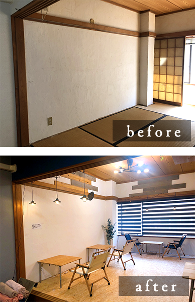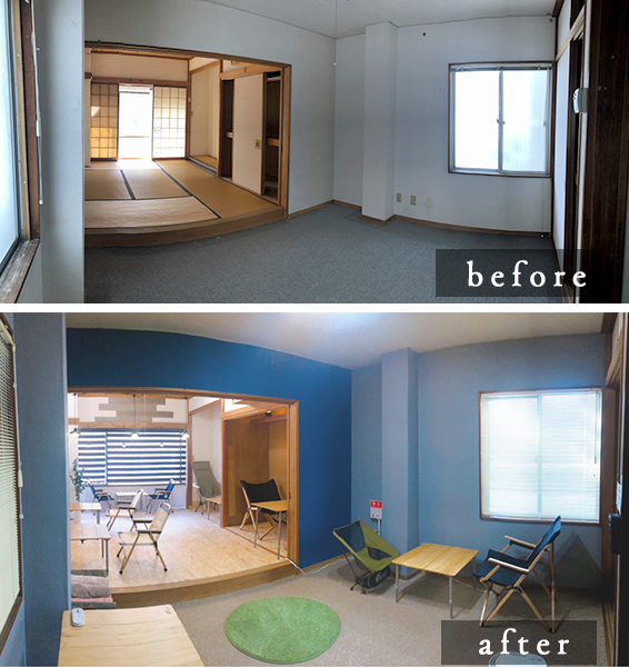 こちらの建物は、大家さんのお住まいでした。それを、私 ibashoオーナー waccy 独りで、DIYリフォームしました。※下の写真をクリック↓